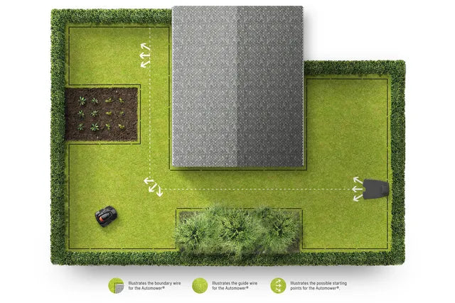 A uniform cutting result throughout the lawn thanks to the possibility to start the mowing at three different remote locations along the patented guide wire, out from the charging station. The larger grass area, the better and more important with several starting points. With active GPS assisted navigation (specific models), the remote starting points are autoset and manual settings are not needed.