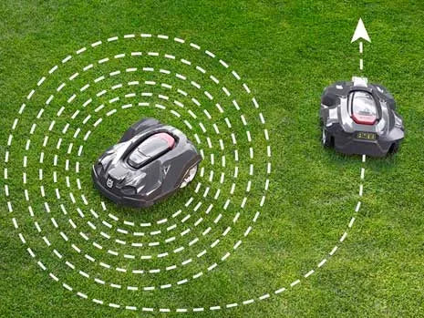 Automatic functionality where the mower switches to systematic spiral pattern cutting to even out height differences in the grass. The cutting disc sensors detect whether the mower has entered an area with higher grass and switches to systematic spiral pattern cutting.