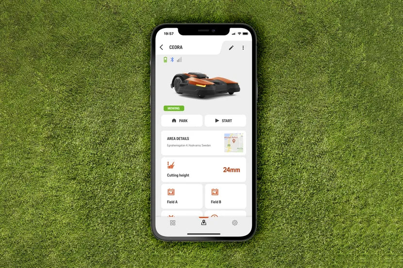 CEORA™ offers total turf control – all from your smart phone. Steering, defining cutting areas or changing the schedule is fast and simple. Husqvarna Fleet Services™ allows surveillance and map localization for full control and theft protection.